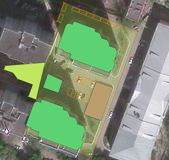 Стоп. А дома, газоны, проезды-проходы, спортплощадка! Упс. Вносим поправки..